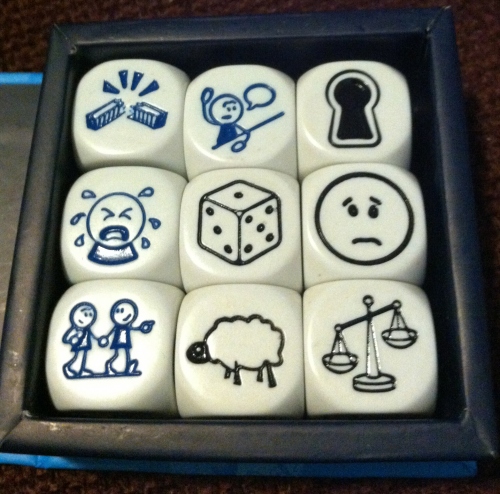 As usual, if you don’t see the link on the story title above, hover your cursor over the Spy Flash tab at the top of the page and select it from the drop-down menu. If you’d like to give the Story Cubes Challenge a try, write a story of any length based on the picture above, then post a link to it here.
